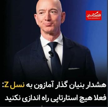 اقتصاددان : جف بزوس اخیرا در سخنرانی خود در هفته فن آوری ایتالیا خطاب به نسل Z تأکید کرد که برای راه‌اندازی استارتاپ عجله نکنند. او گفت بسیاری از جوانان با دیدن نمونه‌های استثنایی مانند بیل گیتس یا مارک زاکربرگ تصور می‌کنند باید از همان سنین پایین کسب‌وکار خود را شروع کنند، اما این مسیر برای اکثریت افراد مناسب نیست و احتمال شکست در آن بسیار بالاست.