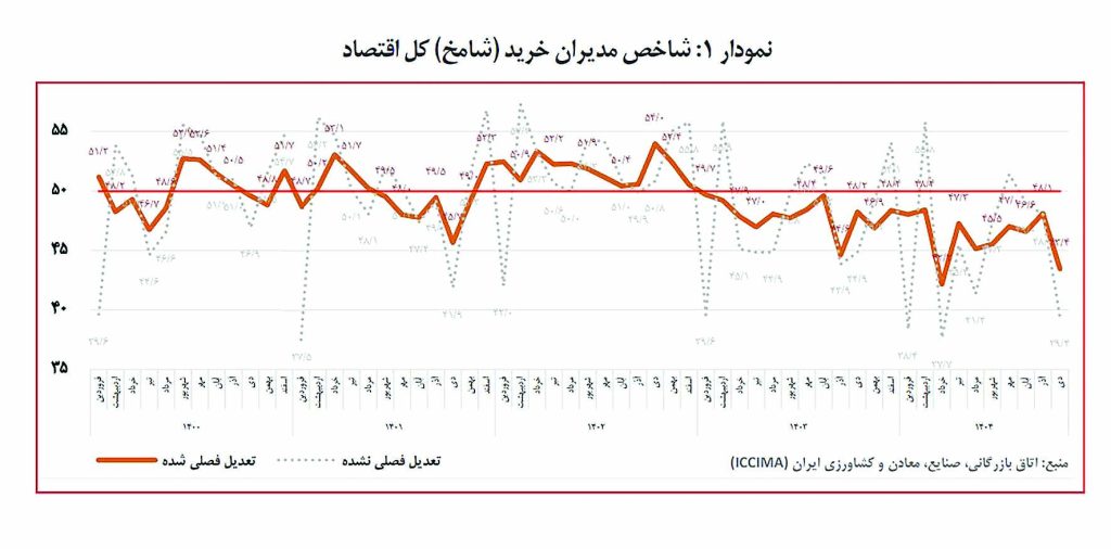 دادههای شاخص مدیران خرید در دیماه ۱۴۰۴ تصویری از ورود اقتصاد ایران به فاز عمیقتر و ناپایدارتر رکود تورمی ترسیم میکند؛ وضعیتی که با افت همزمان تقاضا، کاهش تولید، افزایش فشارهای هزینهای و تضعیف شدید انتظارات فعالان اقتصادی همراه شده است. افت کمسابقه سفارشات جدید، کاهش مستمر تولید و فروش، رشد شدید قیمت نهادهها و بدبینی بیسابقه نسبت به آینده نشان میدهد که اقتصاد با یک شوک فراگیر و ساختاری روبهرو شده است.