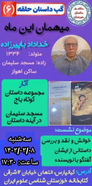 ششمین گپ ماهیانه حلقه داستان خوزستان در کتابخانه علوم ایران برگزار شد.