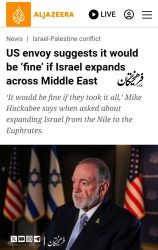 مایک هاکبی، سفیر آمریکا در اسرائیل، گفت که اگر اسرائیل در سراسر خاورمیانه گسترش یابد «مشکلی ندارد»، و بر آنچه حق مردم یهود بر «سرزمین موعود» توصیف کرد، تأکید نمود.