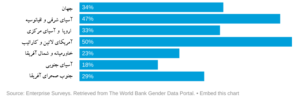 اطلاعات و آمار در سطح جهانی حاکی از آن است که از هر ۳ کسب و کار کوچک، متوسط و بزرگ تنها یک مورد متعلق به بانوان است. این نرخ در بین مناطق مختلف دنیا متفاوت است، از کمترین ۱۸٪ در جنوب آسیا تا بیشترین۵۰٪ در آمریکای لاتین و کارائیب در نوسان است. در آسیای شرقی و اقیانوسیه، ۴۷ درصد و در خاورمیانه، پایین ترین سطح ۷ درصد در جمهوری یمن به ۴۹ درصد در تونس ثبت شده است. از طرفی دیگر اطلاعات نشان می دهد مشارکت بانوان در مالکیت کسب و کار با سطح درآمد کشورها همبستگی مثبت دارد، اما تنها به این عامل بستگی ندارد. در کشورهای کم درآمد، از هر ۴ کسب و کار تنها یک کسب و کار متعلق به بانوان است. در کشورهای با درآمد متوسط و بالا، این نرخ به ترتیب ۳۶ و ۳۷ درصد است.